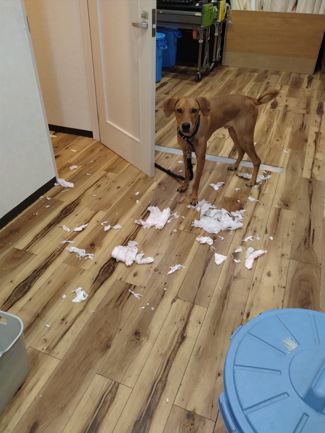 まさかの #トイレ からトイレットペーパーを取り出し、こんな悪戯をされておりました😭