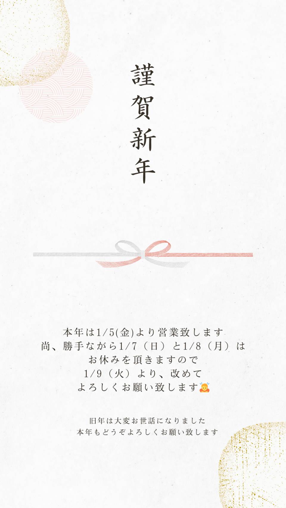 週明けの1/9(月)より、気持ちを新たに頑張らせて頂きます!